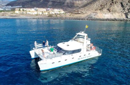 La visite est disponible deux fois par jour. Ce baleine et visite des dauphins vous emmène directement à la découverte du monde merveilleux des baleines et des dauphins. Ensuite, vous pourrez vous détendre sur nos terrasses spacieuses et notre fly-bridge pour profiter d'une délicieuse sélection de boissons, de fruits, de collations, de tapas et bien plus encore. Vous pouvez opter pour une baignade, faire de la plongée avec tuba ou simplement profiter du soleil devant les magnifiques montagnes de Tenerife.