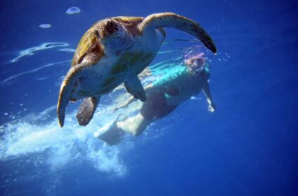 We start the kayaking trip from the beach of Los Cristianos, and head to the PalmMar rocks, with their impressive caves and caverns. We go to a special place where sea turtles live, and do snorkeling to observe these lovely animals. PalmMar waters are also home to many other species of fish and marine animals, so what you see from the surface here will amaze you and leave great memories. Snorkeling lasts 30 minutes and is guided by an instructor. Then we do more canoeing in PalmMar to enjoy picturesque views of the area. The kayak trip lasts 2 hours and is accompanied by a professional guide.