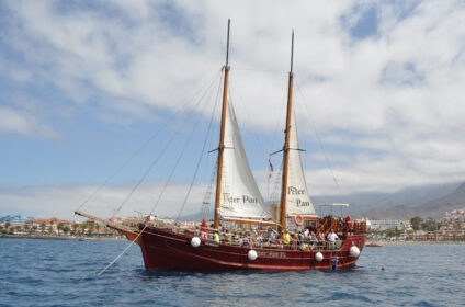 De PETER PAN is gevestigd in de stad Los Cristianos, van waaruit we de reis zullen beginnen om de grienden en dolfijnen in de dikke darm te bezoeken. Anker later in het zeereservaat van La Caleta en de Palm-Mar om te genieten van een duik in het heldere water en een geweldige lunch.